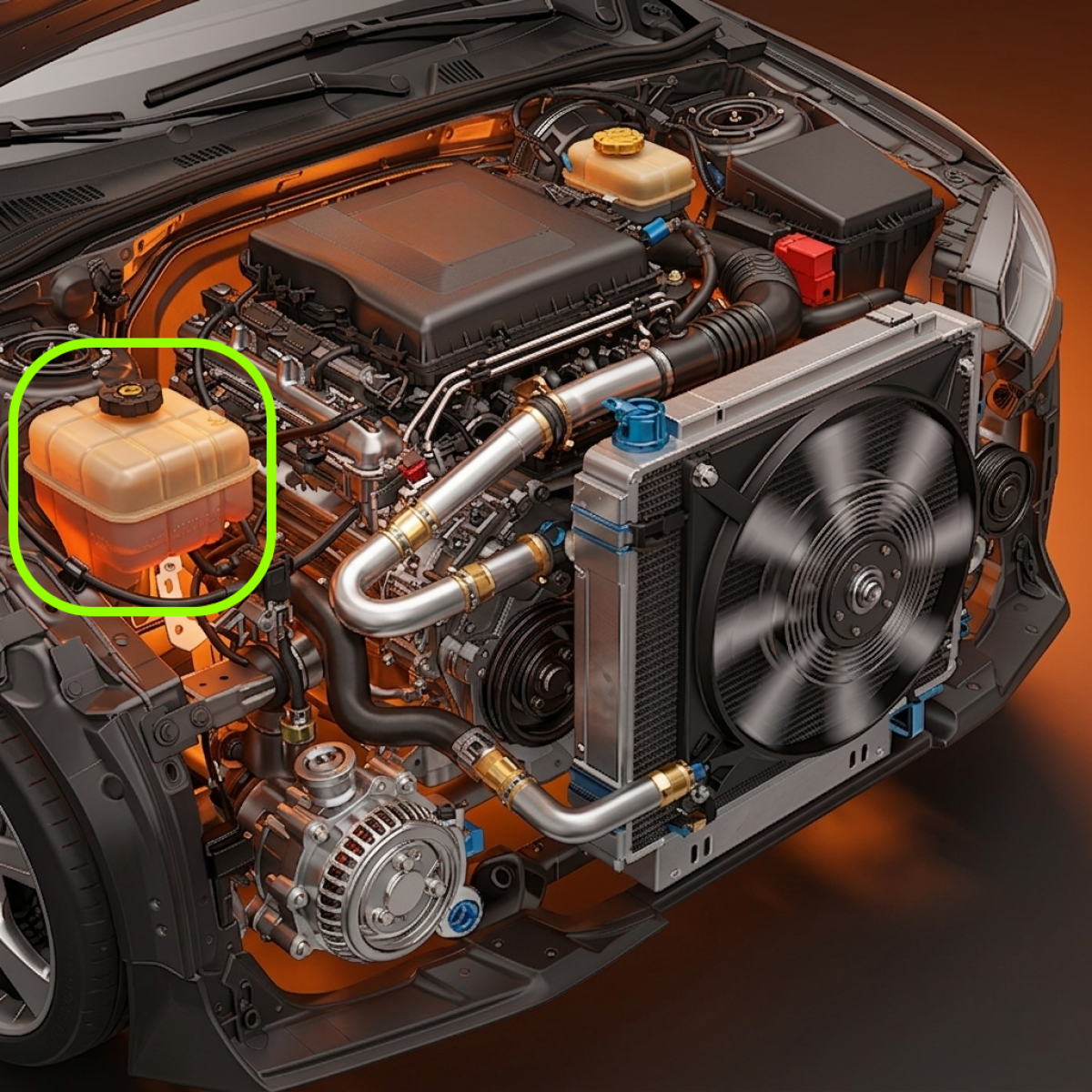 ➡️ It is responsible for storing the coolant that expands due to heat and